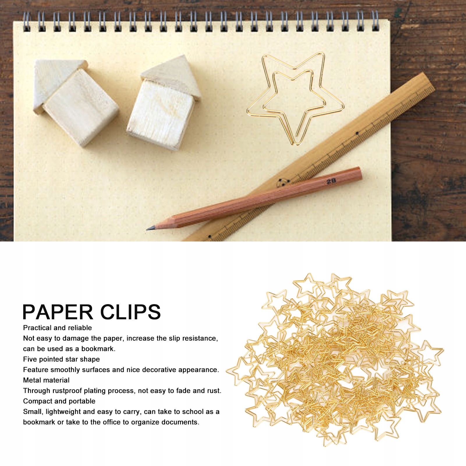 100 шт. Скріпки для паперу у формі золотих зірок Нековзкі скріпки з металевим покриттям Милі скріпки для паперу Портативні маленькі скріпки для паперу для шкільного офісу