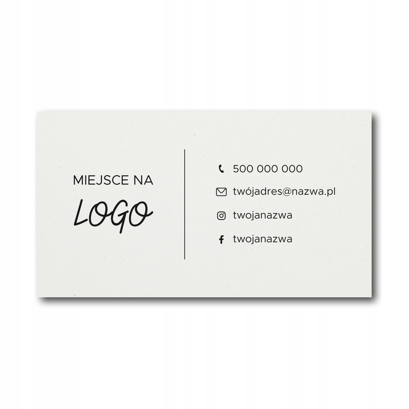 - Чорний друк із вашим логотипом і вибраними контактними даними: адреса веб-сайту, соціальні мережі, номер телефону