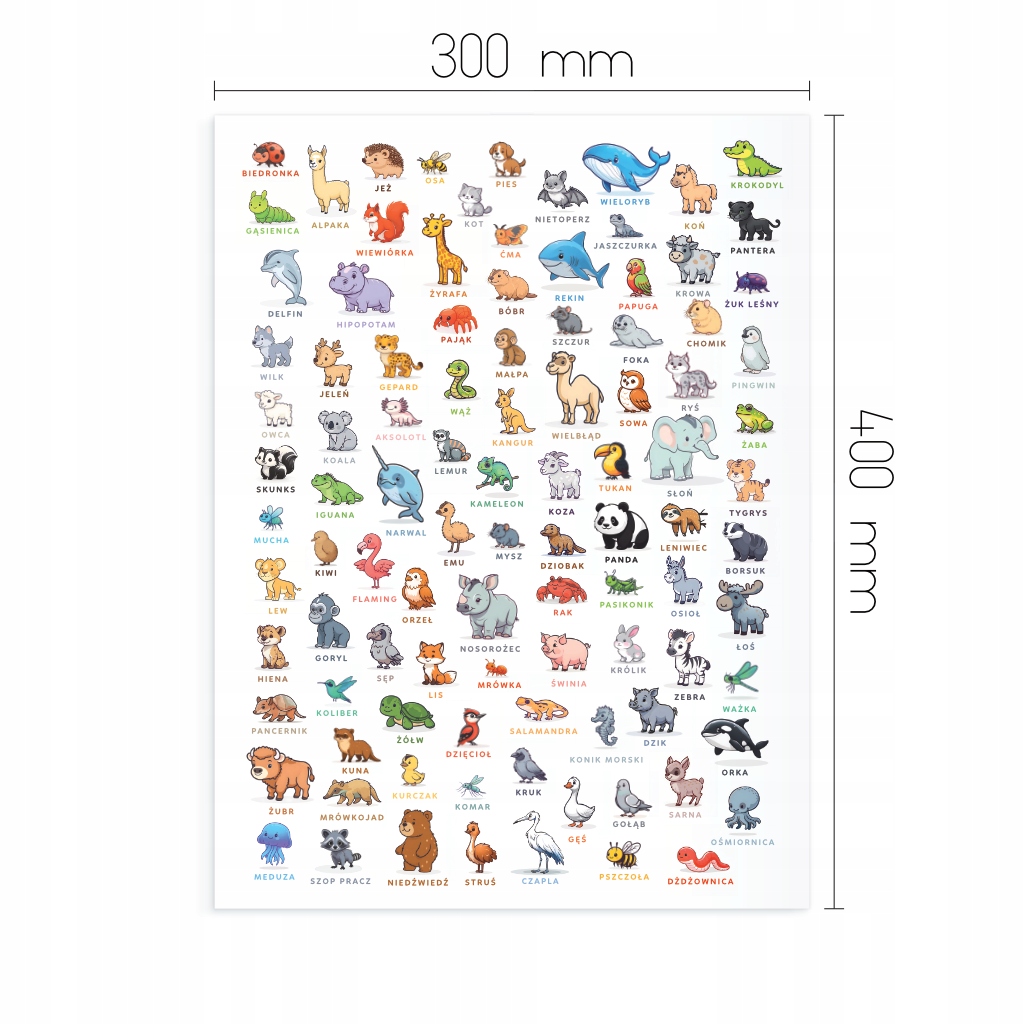 100 тварин для дітей - навчальний плакат - Монтессорі - 30х40 см