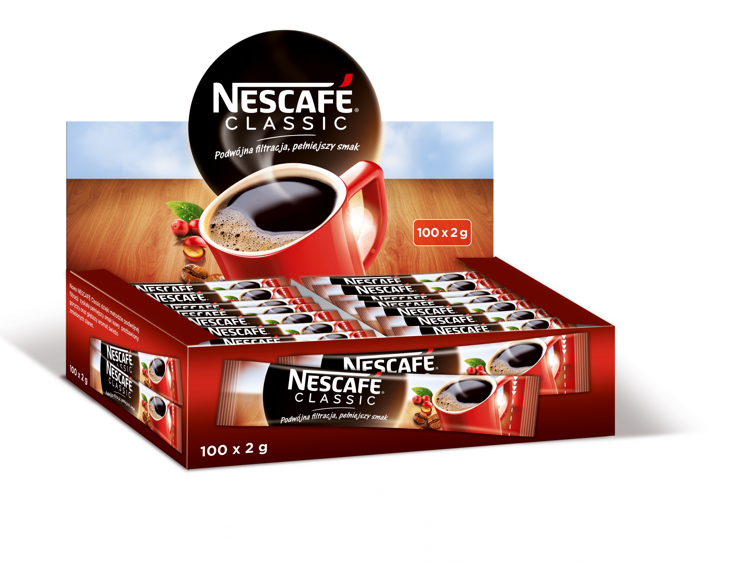 Почніть день з NESCAFÉ CLASSIC, найпопулярнішої розчинної кави в Польщі та в світі. Доступний на ринку більше 80 років у більш ніж 180 країнах! Ця кава створена для справжніх поціновувачів справжнього кавового смаку, які не уявляють дня без чашки ароматної кави. Ця унікальна композиція виготовлена із зерен робусти середнього обсмаження з В’єтнаму та Індонезії. Відрізняється неповторним смаком і насиченим ароматом. Характеризується сильною ноткою, виразним кавовим смаком і низькою кислотністю. Завдяки передовій технології подвійної фільтрації він залишає найкраще в каві - більш повний смак без гіркоти та глибокий аромат свіжозмелених зерен. Це ідеальна кава для правильного початку дня. Також доступний у варіанті без кофеїну. NESCAFÉ Classic це: - унікальний, насичений аромат і повний смак розчинної кави - виготовлений із зерен робусти середнього обсмаження з В'єтнаму та Індонезії - сильна кавова нота, виразний смак і низька кислотність - передова технологія подвійної фільтрації забезпечує більш повний смак і аромат - виготовлена з 100% кавових зерен зі стійких культур - ідеальна для подачі в гарячому та холодний - Доступний у банках по 200 г, 100 г, 50 г, пакетиках по 75 г та пакетиках по 2 г.