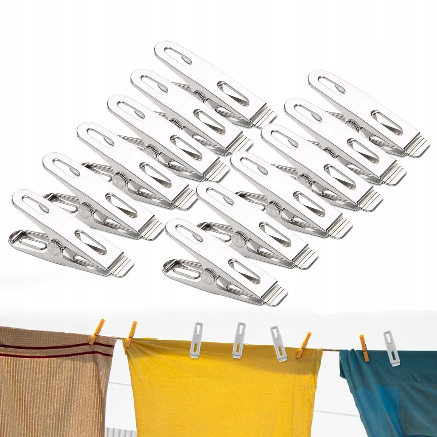 100 затискачів для одягу з нержавіючої сталі для прання Міцні міцні затискачі для одягу