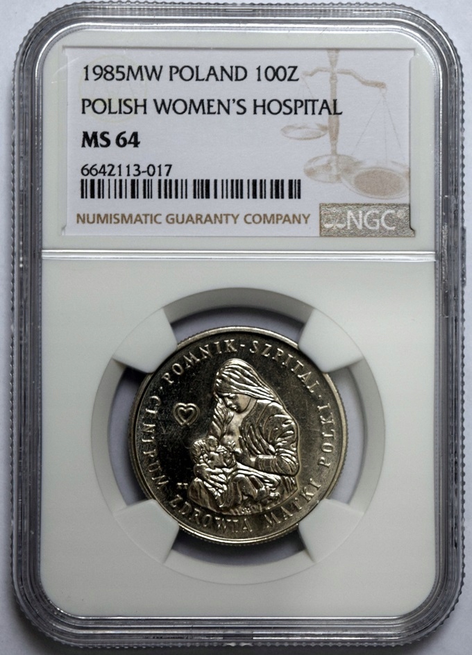 100 злотих ЦЕНТР ЗДОРОВ’Я МАТЕРИНИ ПОЛЬЩИ 1985 NGC MS64 MAX ПРИМІТКА