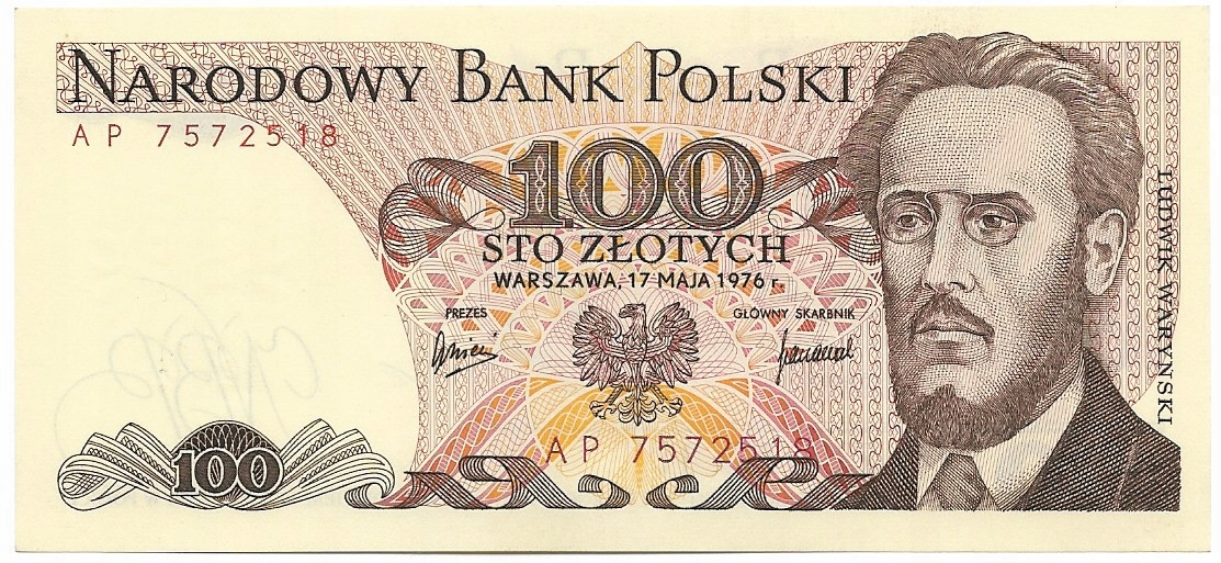 100 злотих Л. Варинський 1976 Серія AP Стан/1-