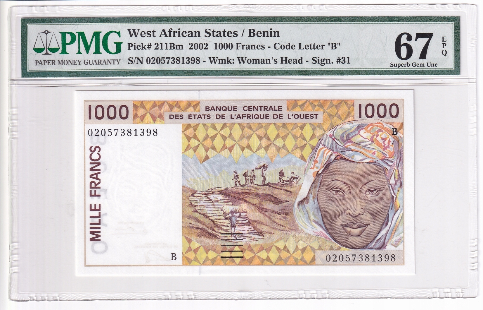 Приобретая «1000 франков 2002 года Бенин PMG 67 EPQ» данный товар из каталога «Африка» вы можете быть уверены, что после оформления заказа, доставки в Украину, вы получите именно то, что заказывали, в оговоренные сроки и европейского качества.