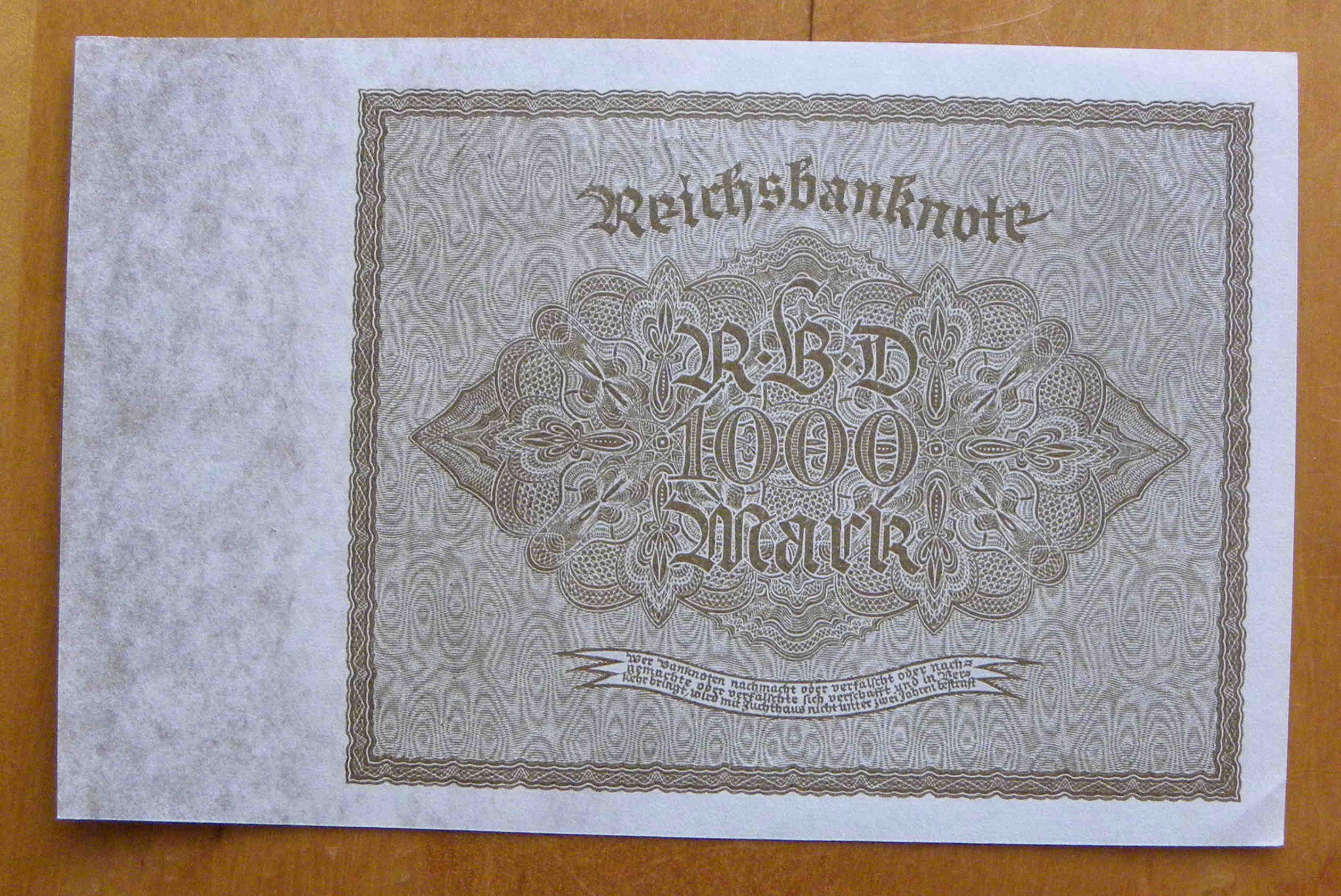 1000 марок 1922 р. Без перевидання