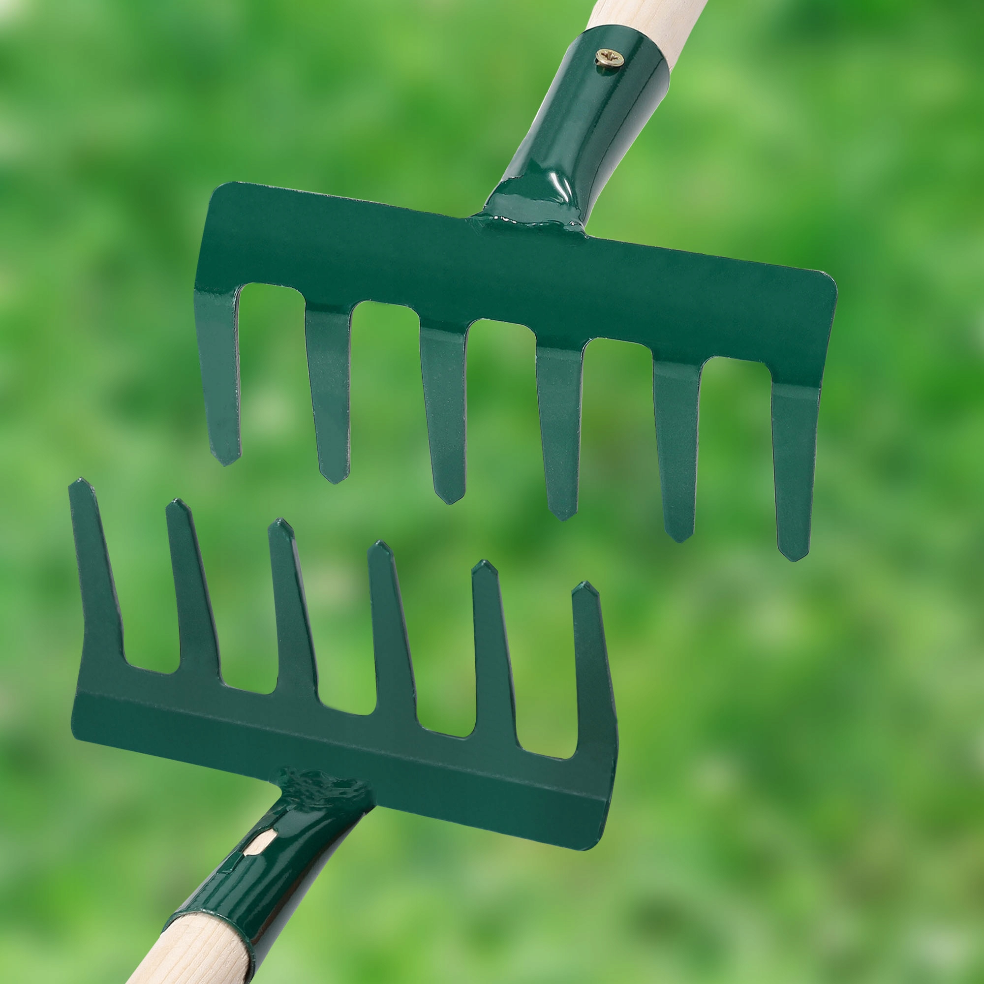 Граблі ідеально підходять для прибирання невеликих клумб, квіткових горщиків і ящиків для рослин. Вони особливо корисні для розпушування та вирівнювання землі. Ідеально підходить для невеликих садових робіт.