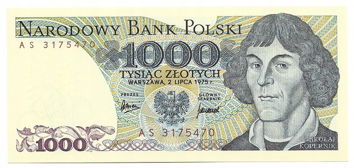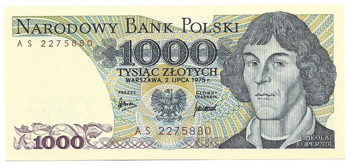 1000 PLN M. Copernicus 1975r як серія Stan/UNC Series