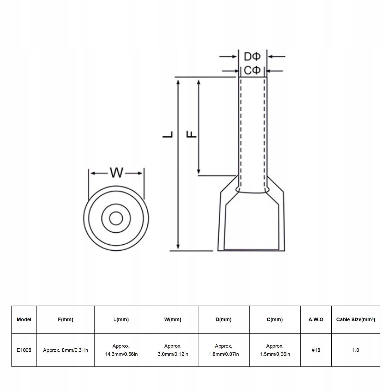 1000 шт. E1008 ізольовані обтискні наконечники для мідного ПВХ-дроту для електронної промисловості