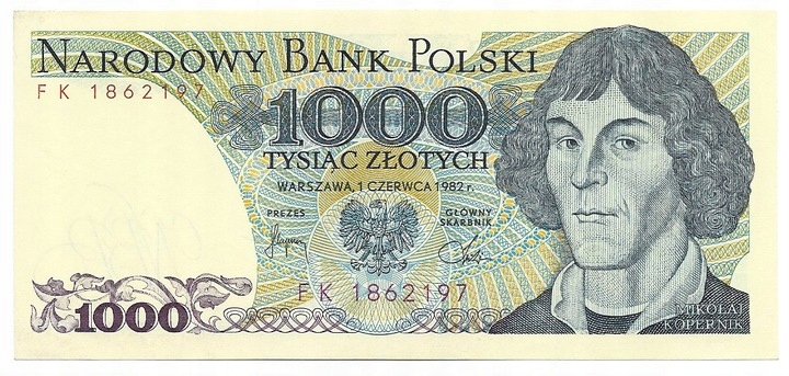 1000 злотих М. Копернік 1982 Серія FK Stan/UNC