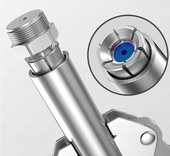 Наш адаптер мастильного пістолета оснащено вдосконаленою конструкцією з 6 губками, що полегшує як замикання, так і відпускання мастильних ніпелів. Завдяки посиленим губкам і високоякісному ущільненню наш продукт забезпечує тривалу та стабільну роботу без витоку навіть за екстремального тиску 10 000 PSI.