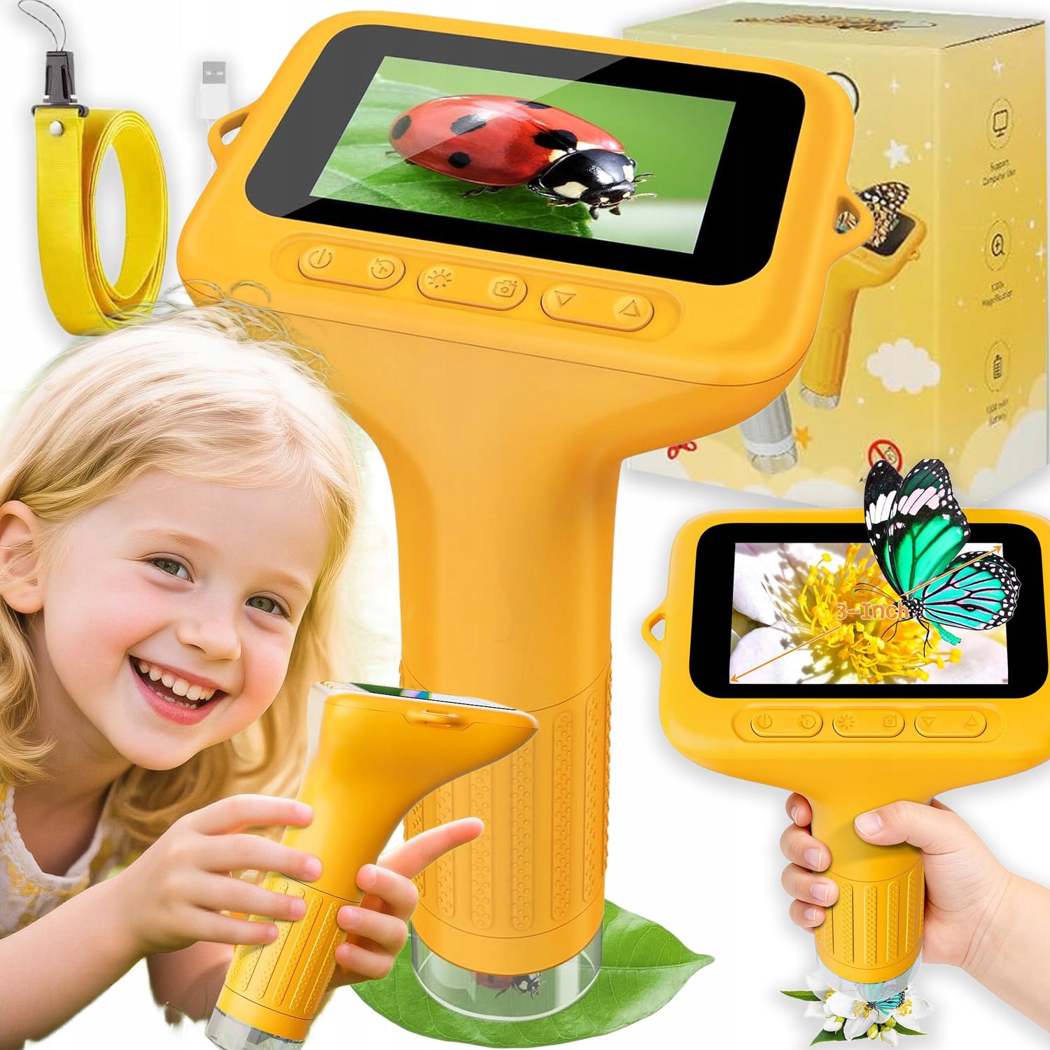 - Яскравий 3-дюймовий HD IPS-екран із 100-1000-кратним збільшенням дозволяє дітям легко досліджувати мікроскопічний світ і насолоджуватися більш чітким та інтуїтивно зрозумілим спостереженням.