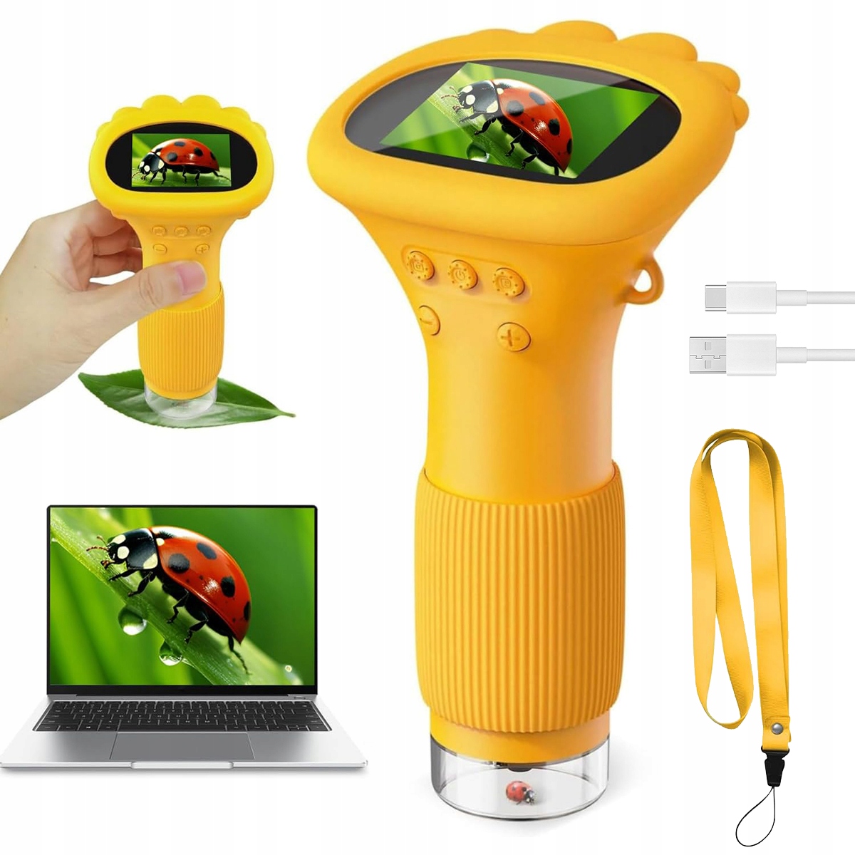 ▶️Мікроскоп Lemoni постачається зі знімним набором для декорування екрану та практичним шнуром довжиною 50 см – ідеально підходить для того, щоб брати його будь-куди. Завдяки цьому діти можуть відкривати захоплюючий світ науки в будь-який час і в будь-якому місці, не турбуючись про втрату цього чарівного гаджета.