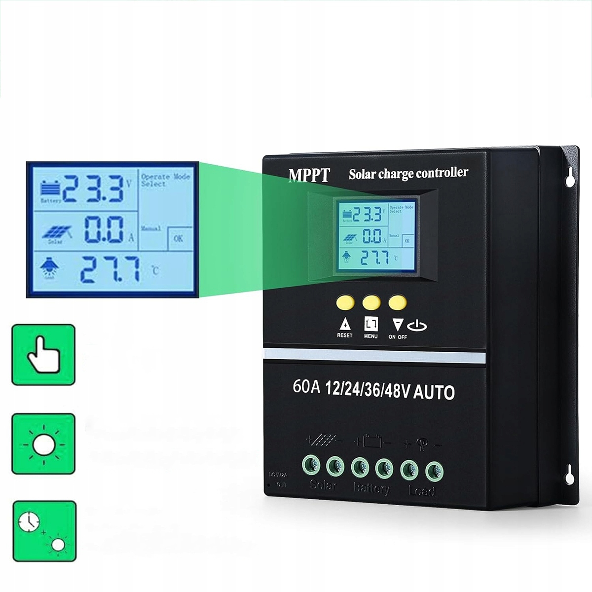 ✅ Багато сумісності: Сонячна енергетична підтримка 12 В/24 В/36 В/48 В, застосовуючи для багатьох типів акумуляторів. До 98%, висока точність відбору проб.