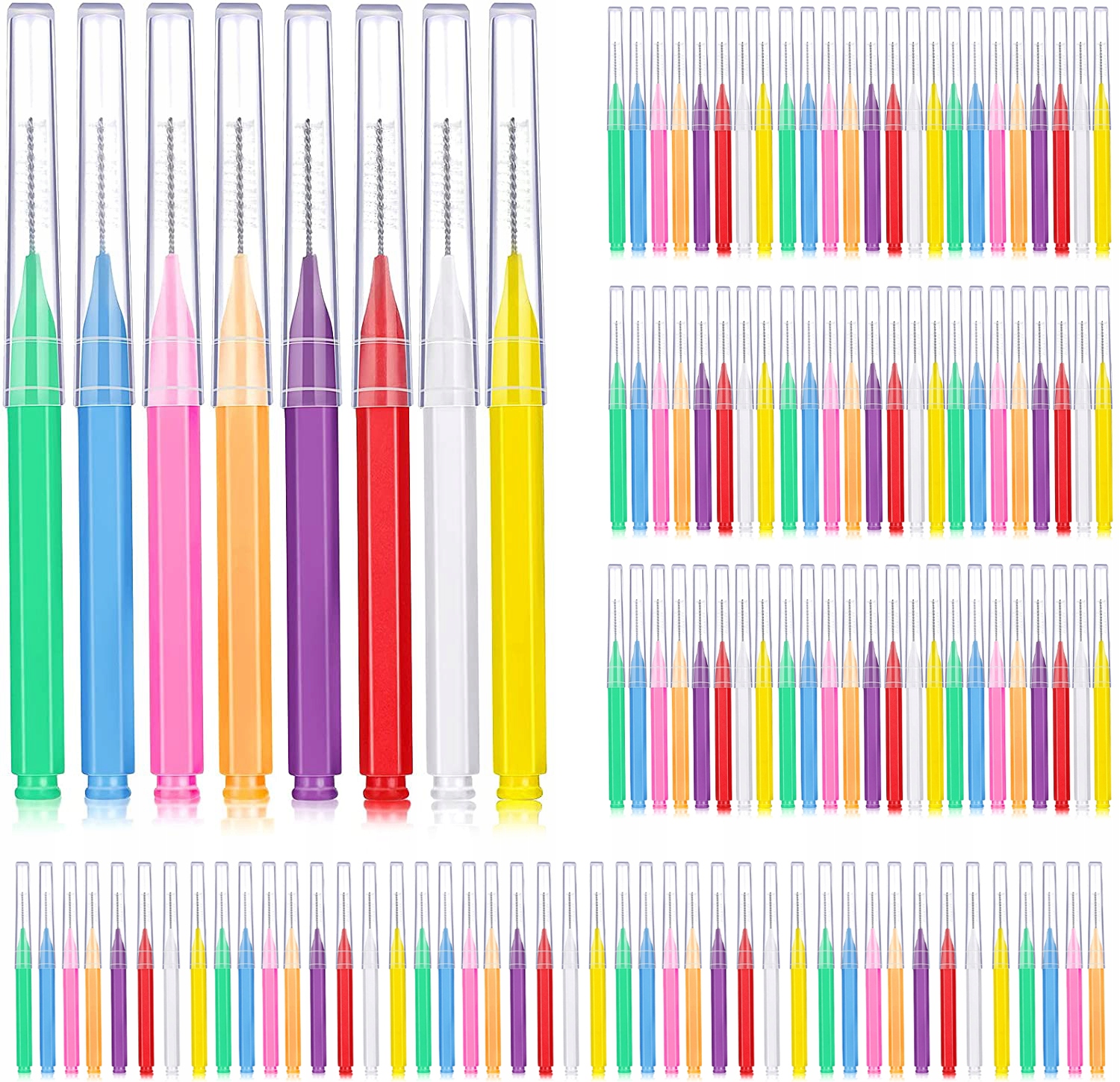 100pcs міжзубні щітки в змішаних кольорах, достатньо та різних стилів, які відповідають сімейному використанню.