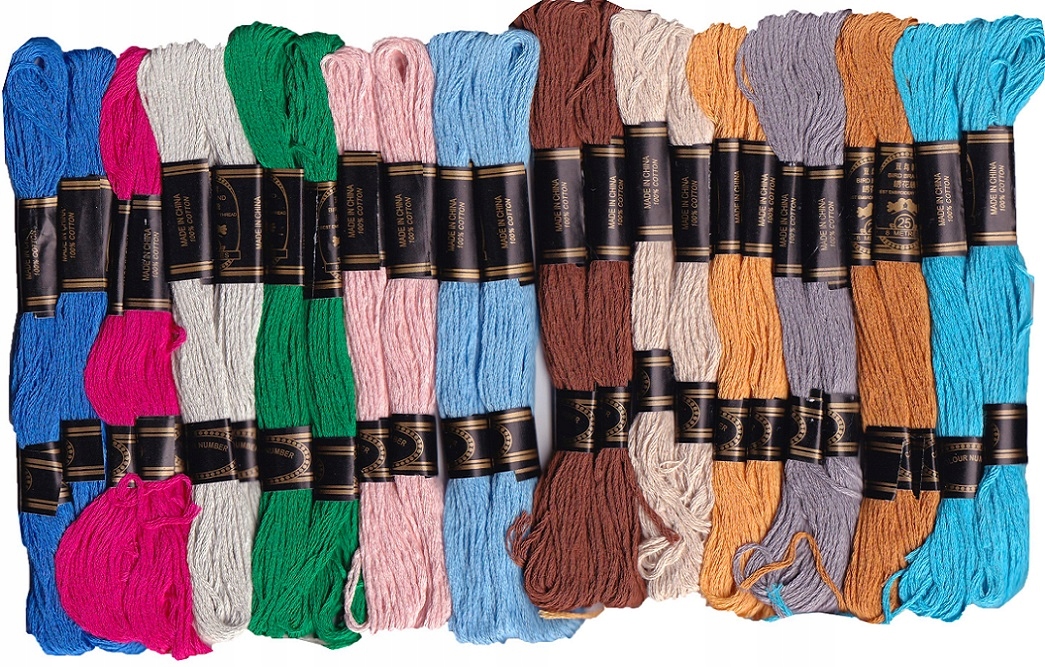 Це типова бавовняна нитка в мотках по 8 метрів, ідентична за параметрами та схожа за якістю до польської Ariadna. Він не фарбує, має гарні, яскраві та стійкі кольори. Перевірено та пропонується на ринку 10 років.