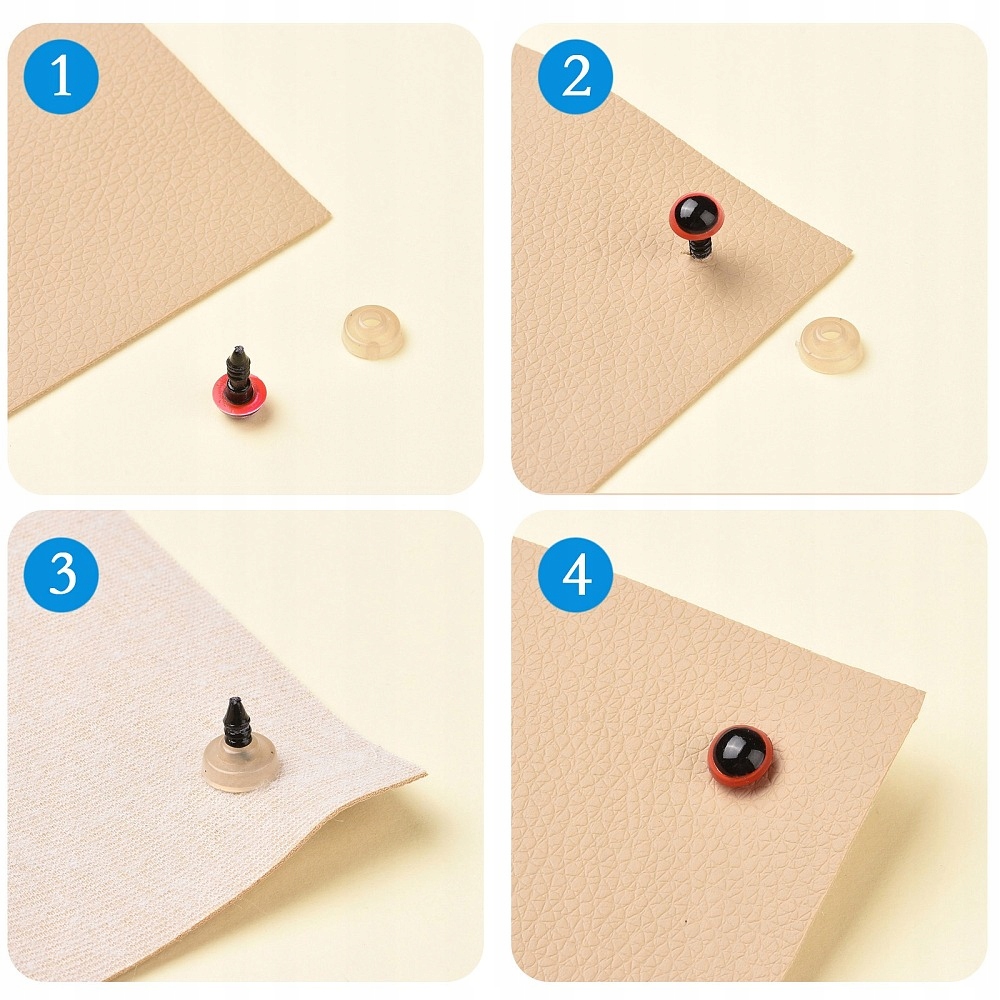 на задній частині захисних очей є пластиковий гвинт, який працює разом із шайбами для вушок, щоб запобігти випаданню вушок з іграшок.