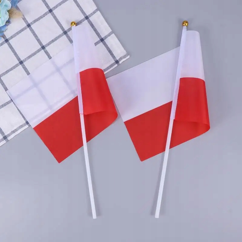 100ШТ РУЧНИЙ ТРИМАНИЙ МАЛЕНЬКИЙ ПРАПОР ПОЛЬСЬКИЙ НА ПАЛИЧЦІ