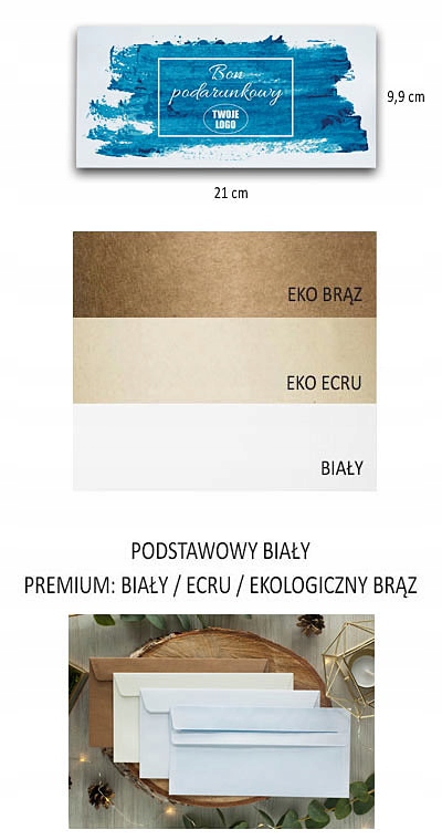 - Також доступні преміальні конвертив таких кольорах: екрю, білий або екологічний коричневий (0,45 зл./шт.)< /li >