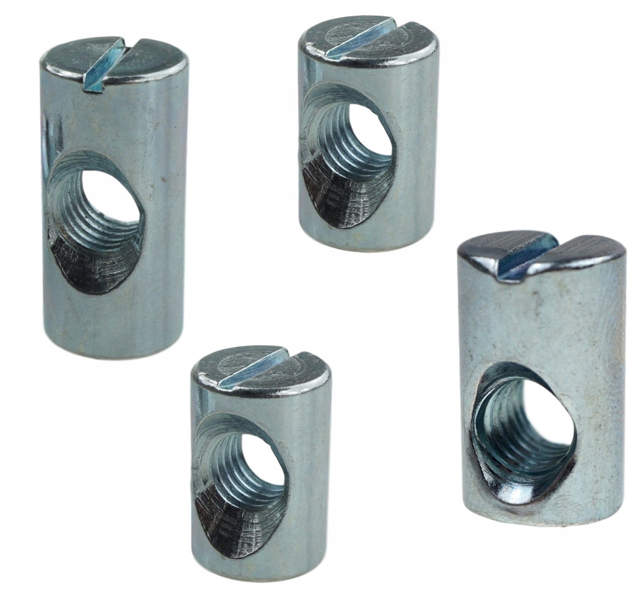Роликова гайка, призначена для встановлення в меблі за допомогою шведського гвинта - доступна в інших наших пропозиціях. Симетрична роликова гайка, розмір M6 x 10 x 20 мм, з метричною різьбою та прямим пазом (для позиціонування в отворі). Роликова гайка виготовлена з білої оцинкованої сталі. Ціна вказана за 100 роликових гайок.