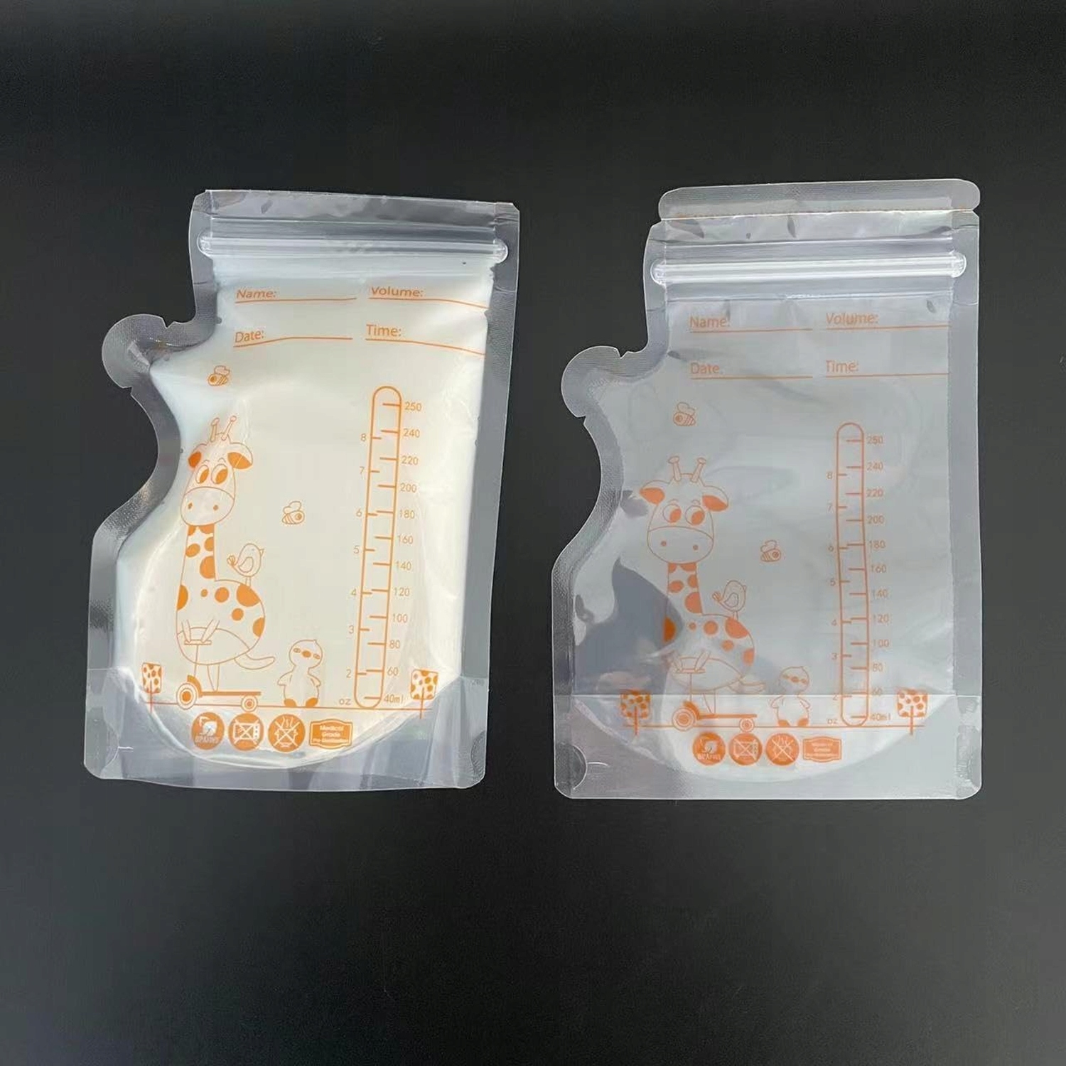 Кожен пакет вміщує до 250 мл молока. Спереду є спеціальне місце для дати та імені дитини, що полегшує організацію та контроль свіжості. Просто видаліть повітря перед закриттям, щоб отримати точну шкалу та заощадити місце в холодильнику чи морозильній камері.