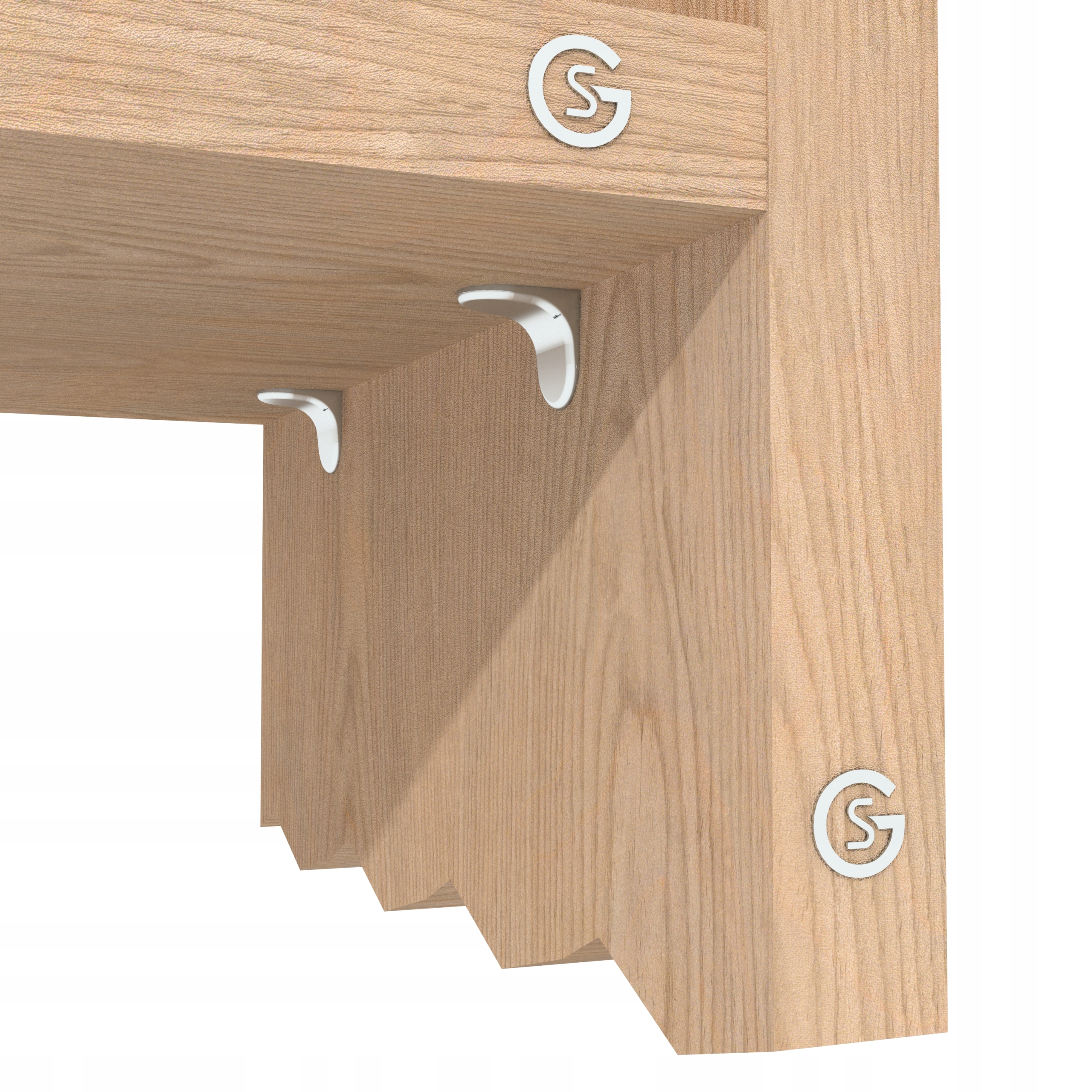 Полиці використовуються в дерев’яних або меблевих полицях. Опора має два штирі для кріплення в корпус меблів і в полицю. Це запобігає випаданню полиці та рекомендовано для різних типів відкритих установок і тих, які потребують міркувань безпеки, унеможливлюючи висування полиці. Ми рекомендуємо опору особливо для місць, де існує ризик висування полиці - виступаючий штифт ефективно блокує та захищає полицю від висунення. Опора монтується шляхом закручування її через паз за допомогою викрутки PZD безпосередньо в отвір у дошці.