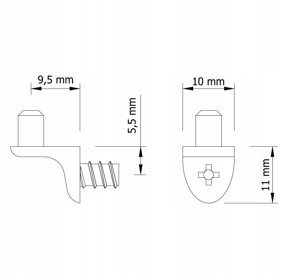 100x Підставка для меблевої полиці з 2 штифтами, вкручені