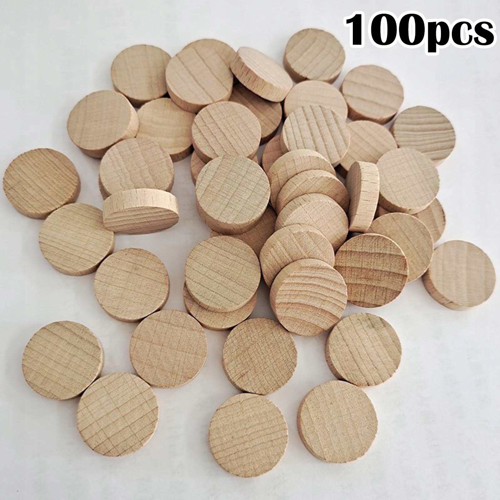 Вміст упаковки: 100 шматочків сирої шматочки букової деревини, кожен круглий шматочок деревини порожній. , добре відшліфована, легка для фарбування або фарбування. Художній проект DIY: Незавершені твори ви можете малювати, плямитися, вигравіровувати та виконувати інші художні твори, щоб випустити свою творчу уяву. Етикетки, прикраси чи щось інше, про що розповідає уява.