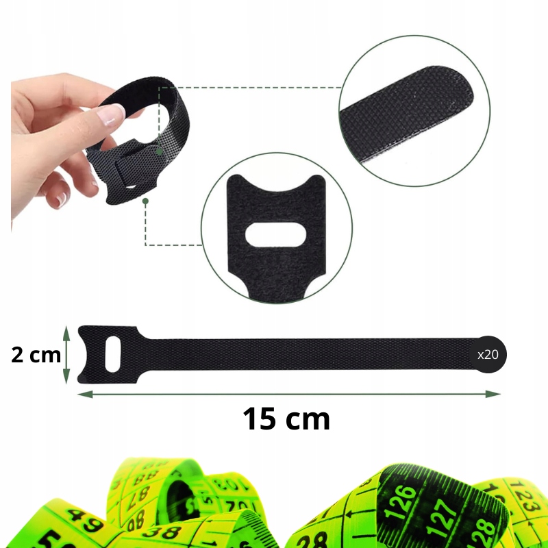 ✔ Організатор смуг на липучках 100x для клінії для клінії кабелів