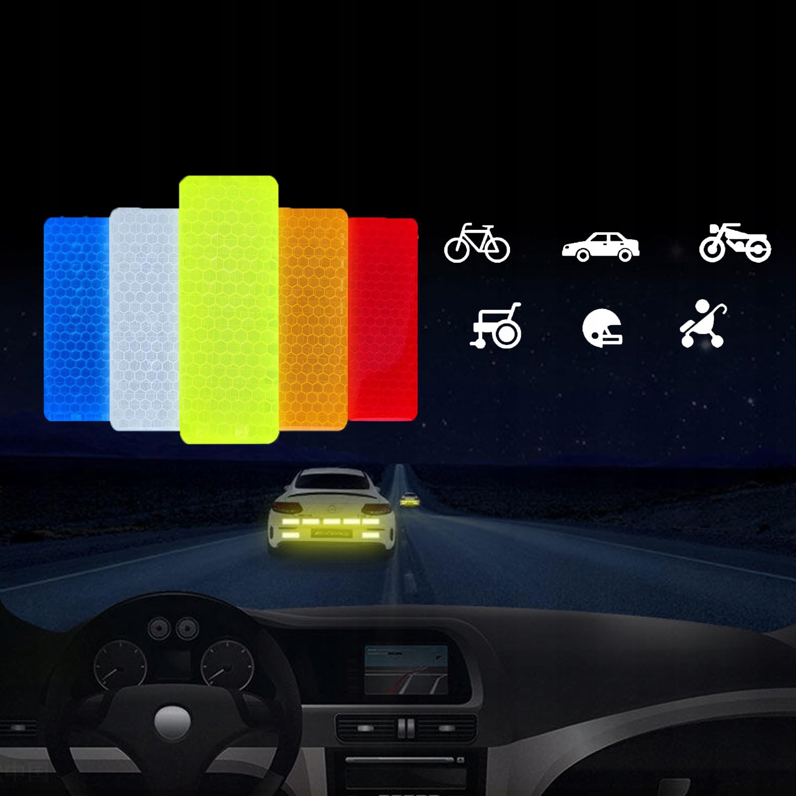 відбиваючі рефлектори виготовлені з пластмасів ПЕТ, вони міцні та міцні, водонепроникні та теплостійкі, захищаючи від аварій у погану погоду або вночі.