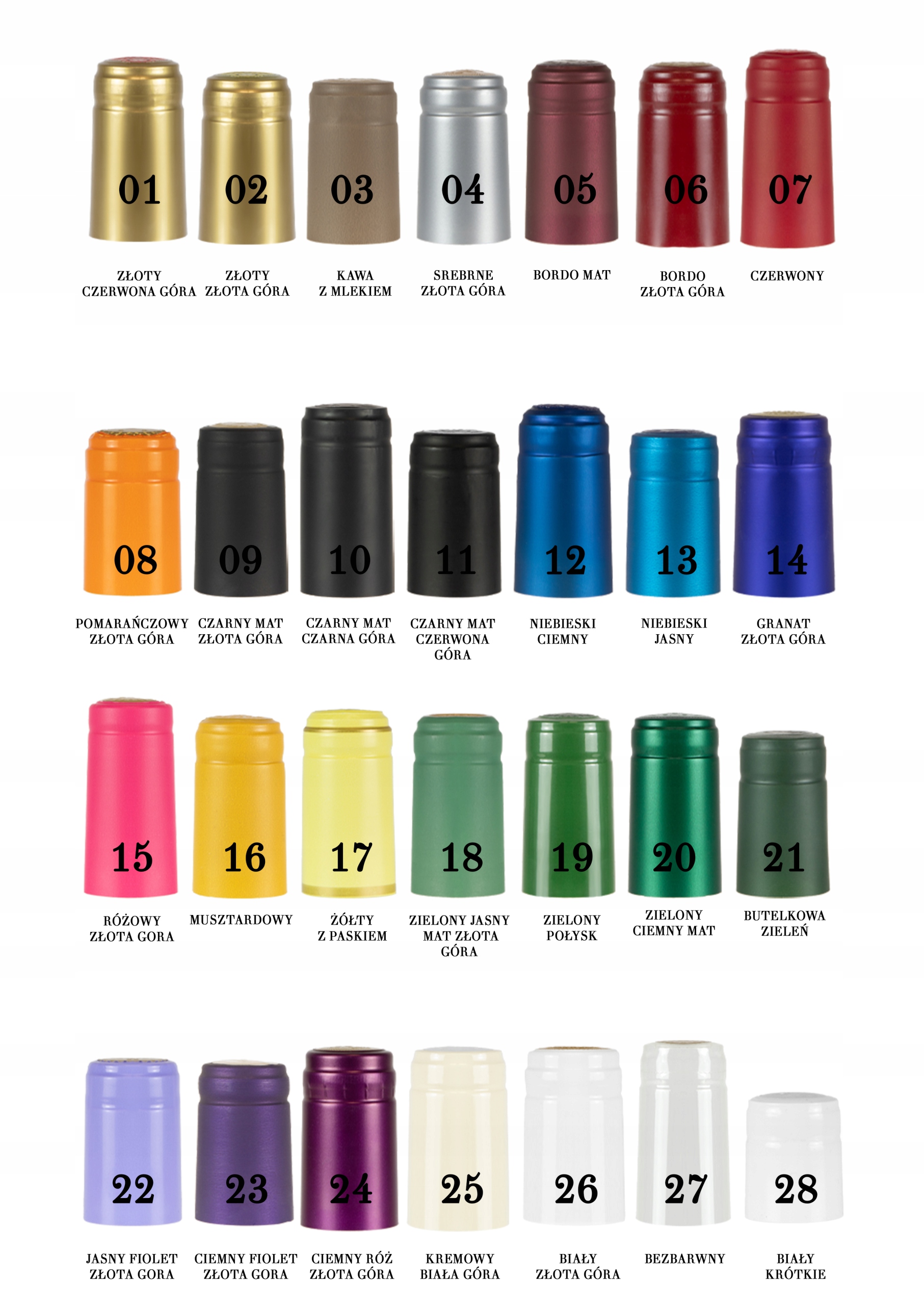 У нашій пропозиції представлені термозбіжні кришки різних кольорів.