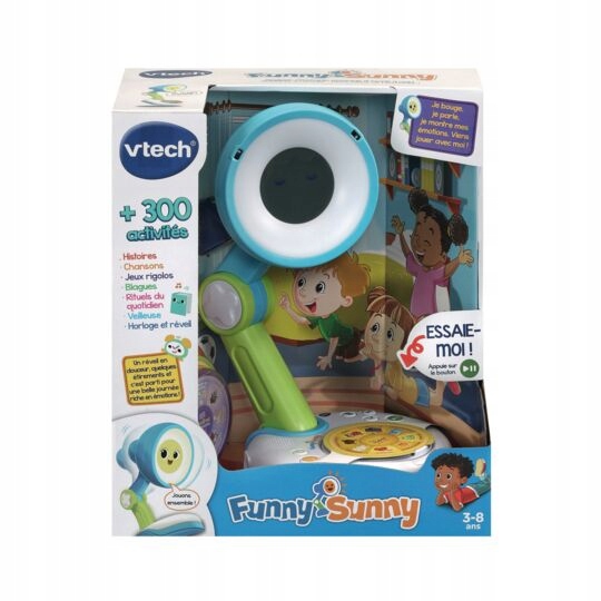 Сонце гуляє в день дитини, будить її та стимулює, розповідаючи їй гарні історії та жарти, пропонуючи різноманітні ігри та багато взаємодій. 100% інтерактивність: з кількома виразами обличчя та повністю сформульованим тілом Sunny оживає завдяки активностям та взаємодії для унікального ігрового досвіду