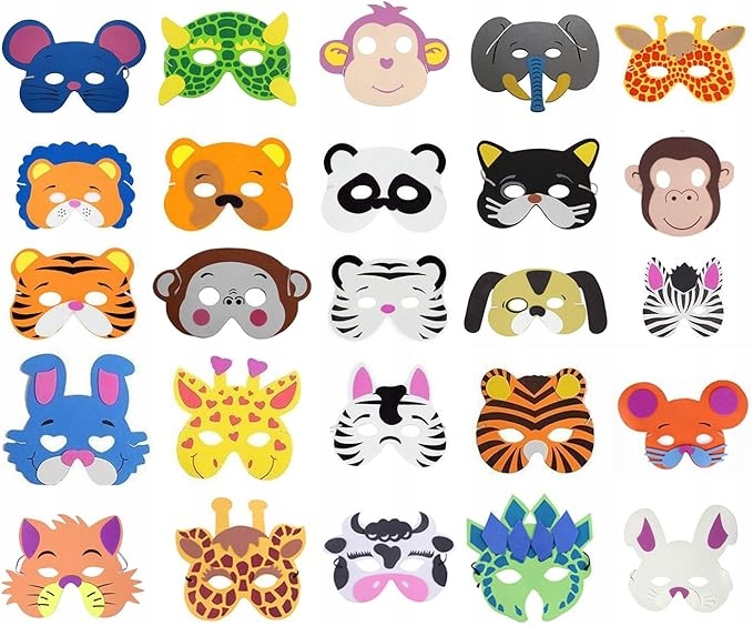 - Кілька варіантів: жираф, мавпа, тигр, ведмідь, кіт, собака, кролик, свиня, зебра, вовк... Доступно 25 масок тварин (випадкова модель), тому ви можете вибрати ту, яка вам найбільше підходить. li>