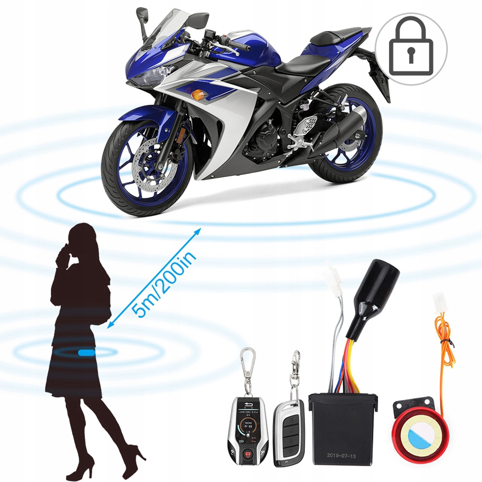 105-125DB МОТОЦИКЛ 2-СТОРОННЯ ДИСТАНЦІЙНА СИГНАЛІЗАЦІЯ ВОДОНЕПРОХОДНА СИСТЕМА RJ