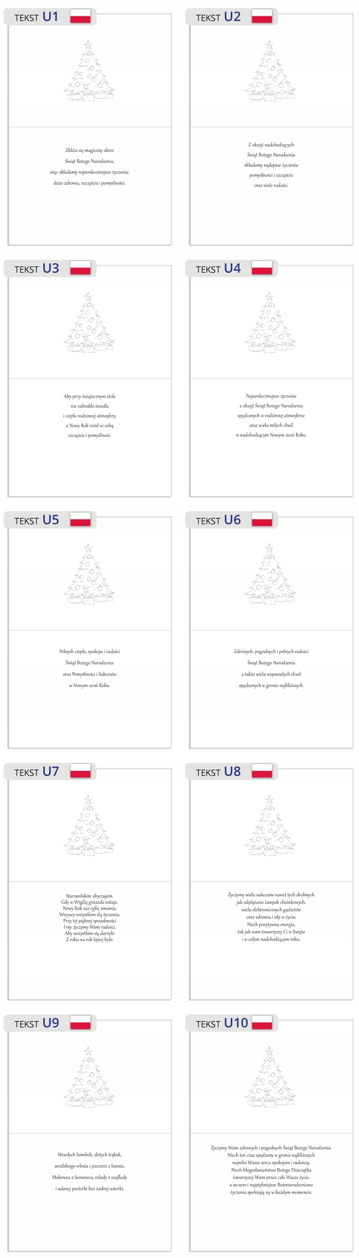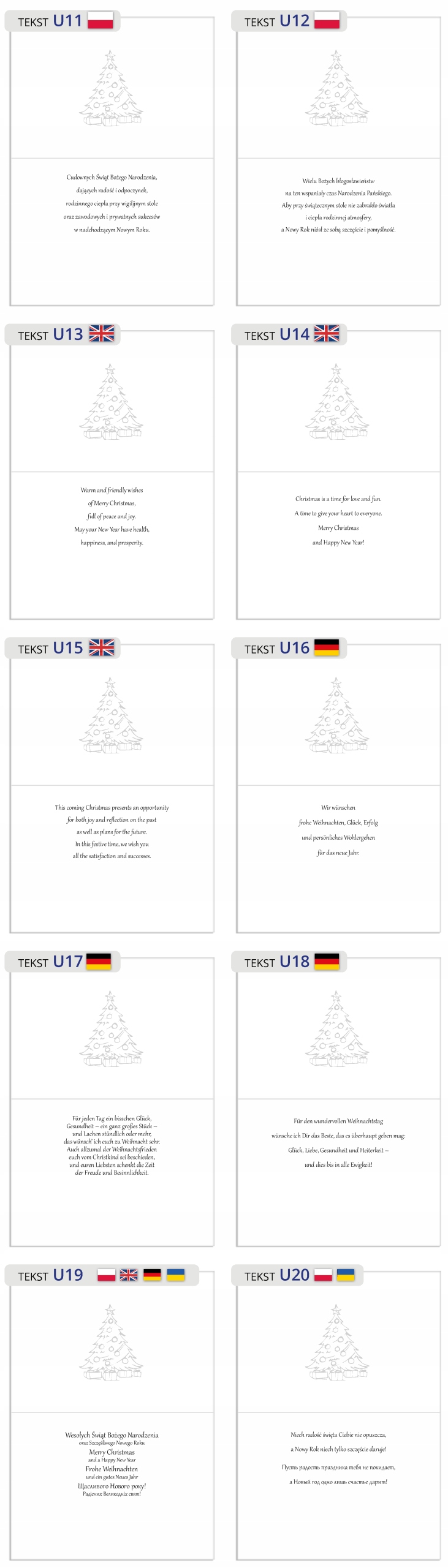 Різдвяні листівки виготовляються спеціально за індивідуальним замовленням з повною персоналізацією (можливість розміщення власного логотипу / реквізитів компанії / тексту і т.д.) і виготовлені з високоякісного крейдованого паперу.