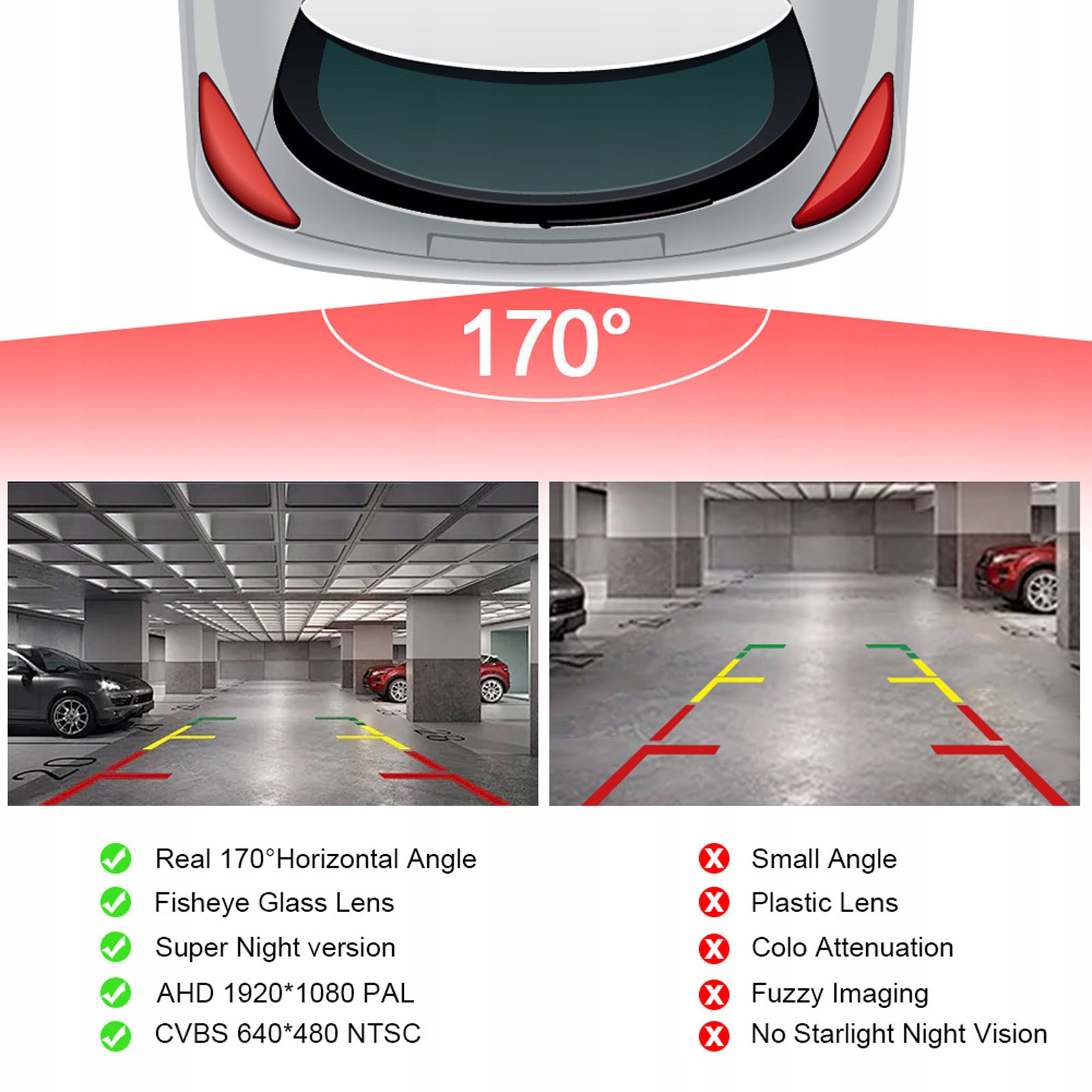 - Функції: Камера заднього виду 1080P 170° AHD, перемикається на CVBS, лінійка вимкнена, нічна камера з об’єктивом «риб’яче око»