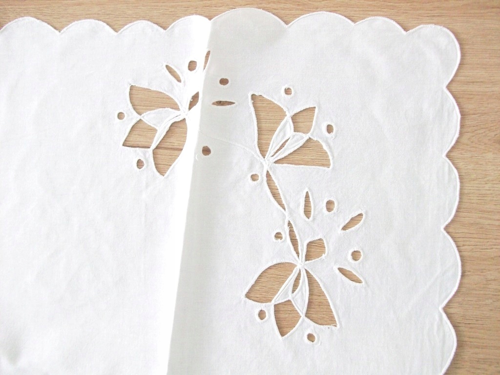 10944 BIEŻNIK - SERWETA NA ŁAWĘ Z HAFTEM RICHELIEU BIAŁA BAWEŁNIANA 65 X 95