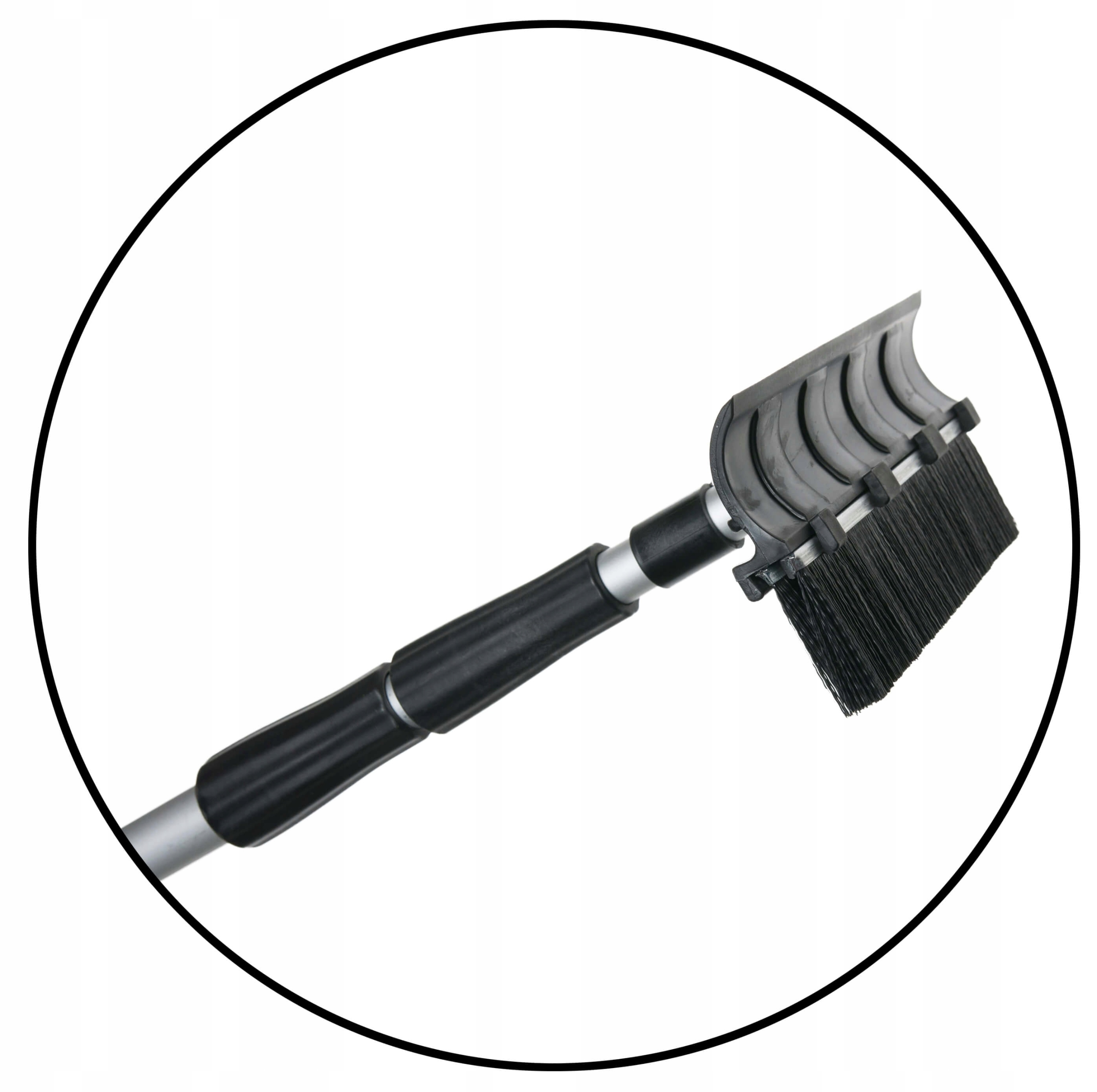 Завдяки можливості регулювання довжини ручки телескопічний скребок справляється практично з будь-яким завданням на висоті. Він підходить не тільки для очищення від снігу дахів, гаражів і сонячних батарей. Ми також можемо використовувати його для зручного прибирання снігу, наприклад, напівпричепа у вантажівці, а за допомогою швабри мити дах або сонячні панелі. Ручка має універсальну різьбу, яка підходить для всіх інструментів зі стандартною різьбовою ручкою. Наприклад, це може бути кисть, валик для фарбування стін або інші інструменти (ці інструменти не входять в набір)