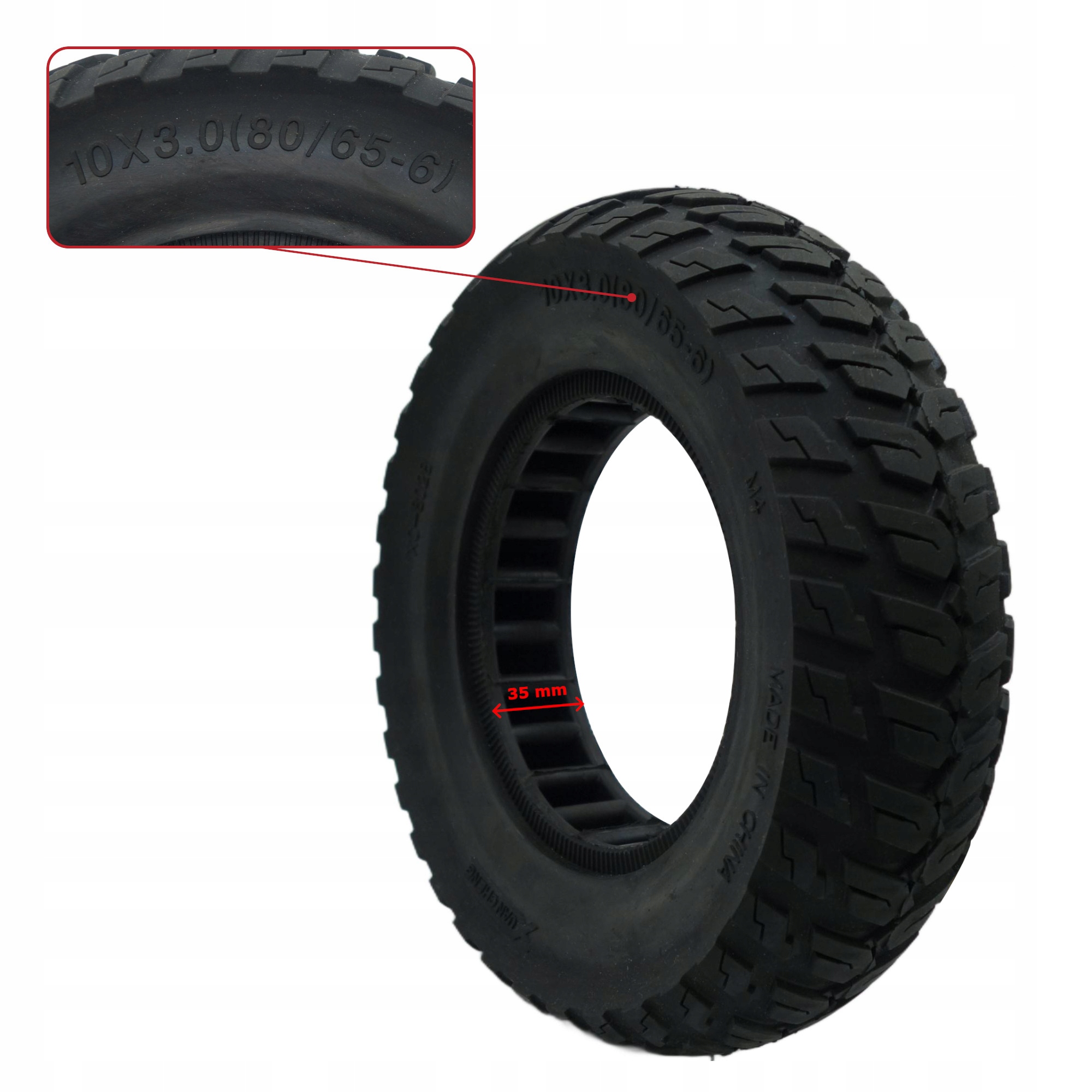 Ширина депозитного кільця шин - 35 мм . Перед покупкою перевірте, чи відповідає він ширину вбудовуваного кільця у вашому скутері. У деяких скутерах колесо з двигуном може мати ширину вбудовуваного кільця 44-45 мм , щоб ця шина не відповідала.
