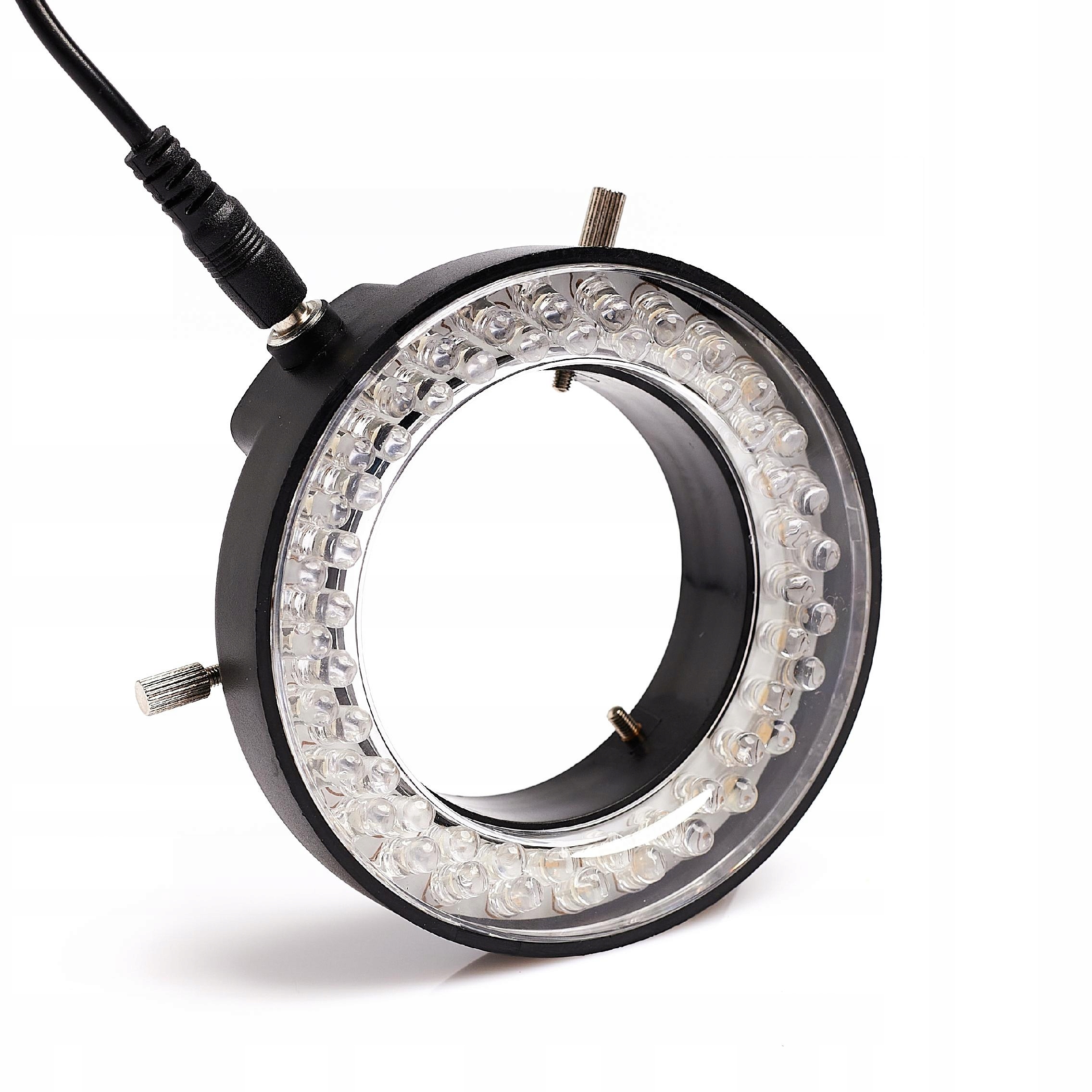 Джерело світла для мікроскопа зі світлодіодами. Світлодіодний кільцевий ліхтар 56x Його монтажні розміри становлять до 60 мм всередині та 95 мм із зовнішнього діаметра, працюють від широкосмугової напруги від 100 В до 240 В. Освітлення з регульованою інтенсивністю. /p>