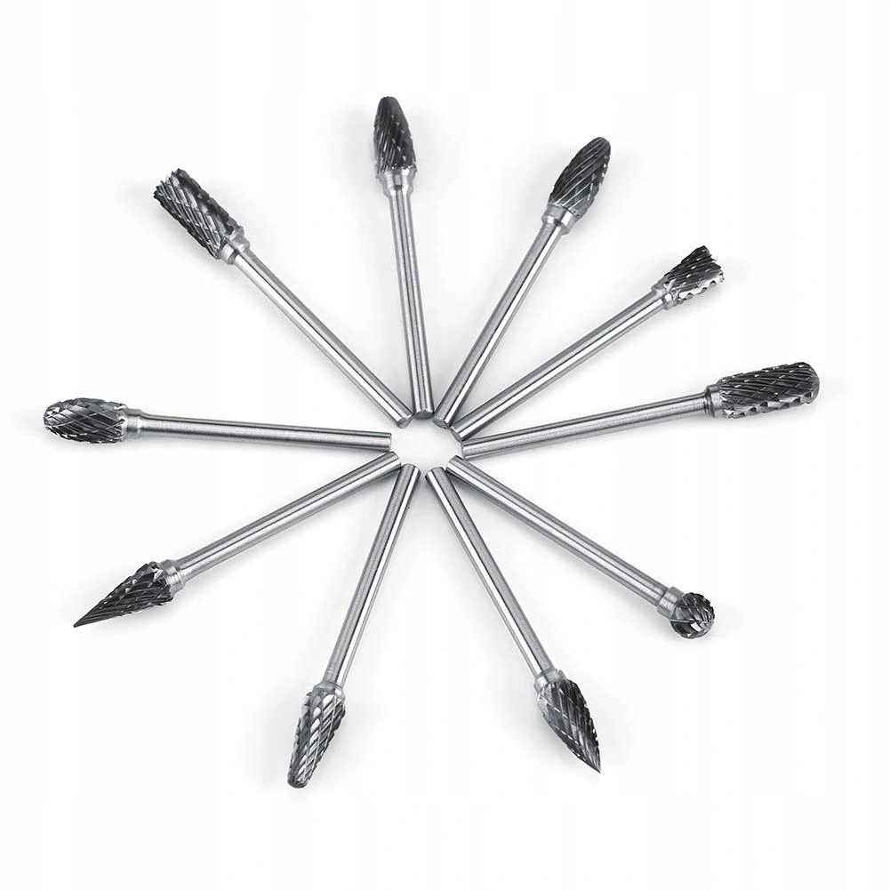 Це набір із 10 обертових свердел різної форми для різних цілей, які можна використовувати для різання чавуну, литої сталі, вуглецевої сталі, легованої сталі, нержавіючої сталі, мідь, алюміній, мармур, нефрит, кістки тощо