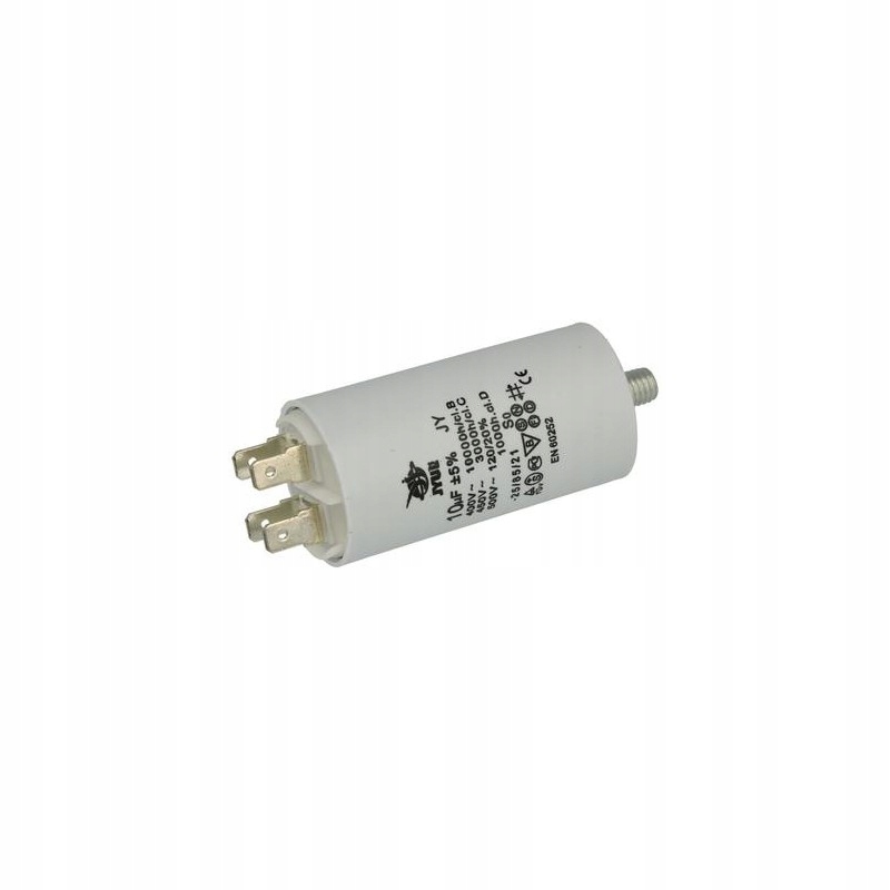 конденсатор; двигун (старт -up); 10UF; 450 В AC; Fi 35x65 мм; 6,3 мм роз'єми; гвинт без гайки; JYC; Rohs