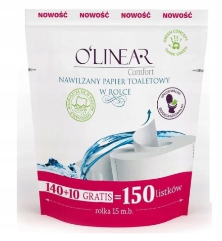 Зволожений туалетний папір O'linear в рулоні призначений для щоденної гігієни. Інноваційна і практична форма упаковки зволоженого паперу в рулоні з перфорацією дозволяє видавати серветку відповідного розміру – «РВИ СКІЛЬКИ ЗАХОЧЕШ».