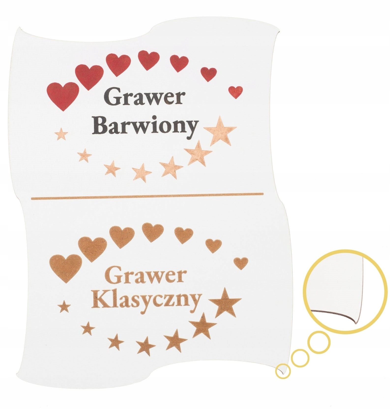 - Біла сторона покрита машинним лаком, що робить його дуже однорідним і гладкий , шар лаку можна видалити лазером або механічно для створення гравіювання