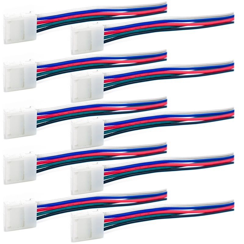 ✅ 10 роз’ємів для RGB світлодіодних смуг із білим кольором – 10 мм – 5 контактів