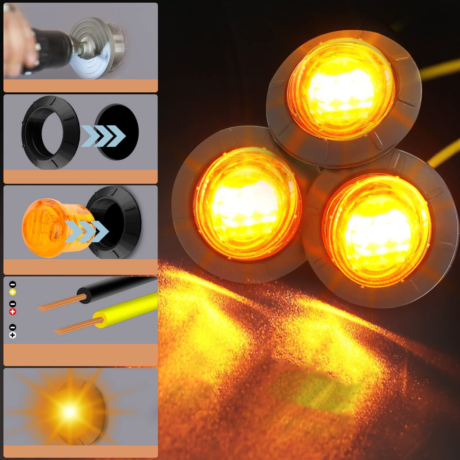 ❇️10 шт. Бурштинові круглі світлодіодні габаритні ліхтарі включають гумовий втулку. Низьке споживання, мініатюрний розмір, вишуканий зовнішній вигляд, ідеально працює протягом 100 000 годин служби.