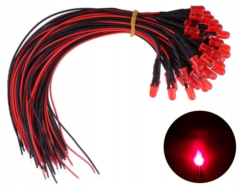 10x LED 3mm, 12V, RED, матовий, кабель 20 см