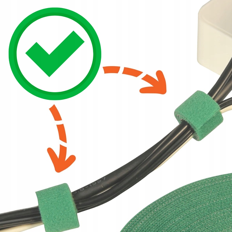 Стрічка призначена для організації кабелів для електроніки, побутова техніка, комп'ютери та зарядні пристрої. М’яка поверхня на липучці захищає кабелі від стирання та пошкодження, забезпечуючи довший термін служби та безпечне використання.