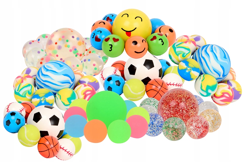 10x PIŁECZKI PIŁKI KULKI KAUCZUKOWE SKACZĄCE ANTYSTRESOWE MIX KOLORÓW