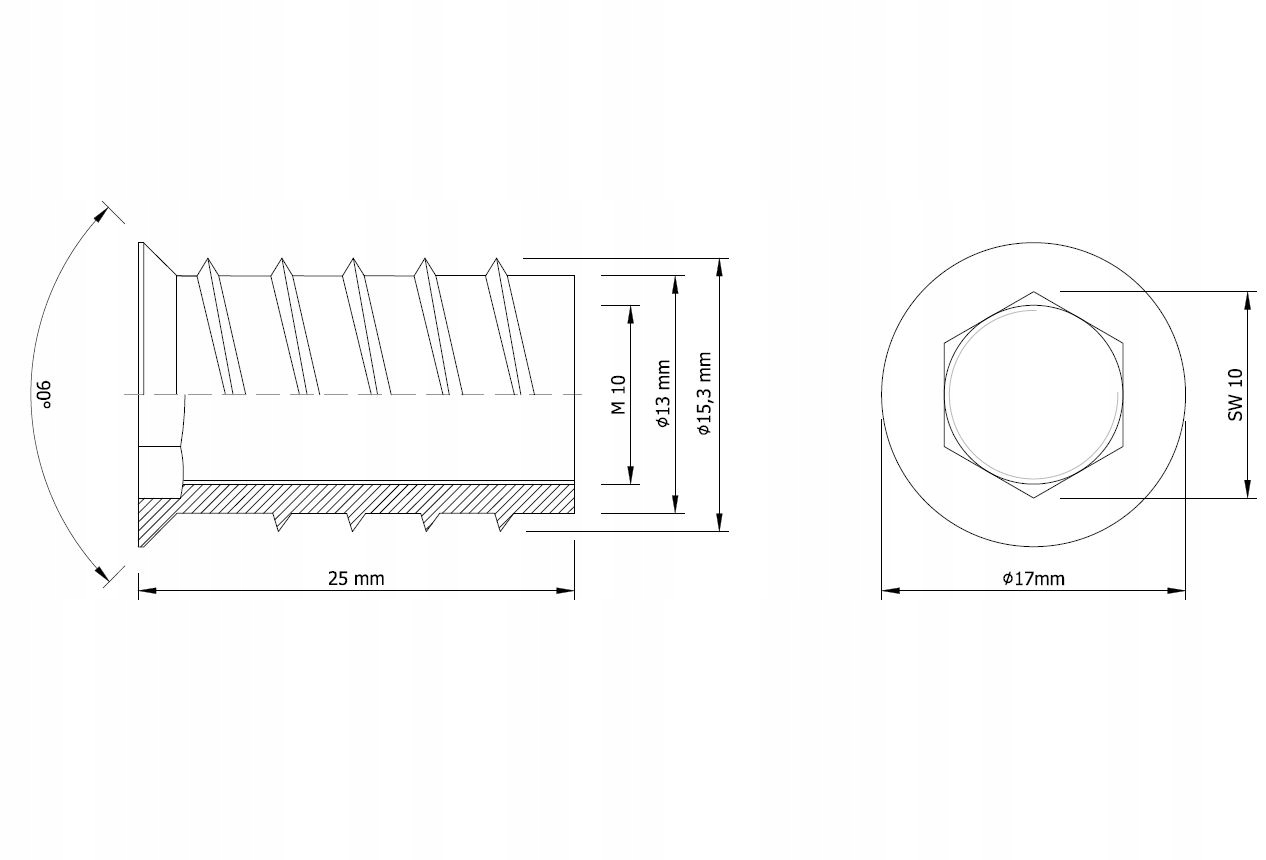 - Діаметр головки 17 MM b> , Розмір M10, довжина 25 ММ.