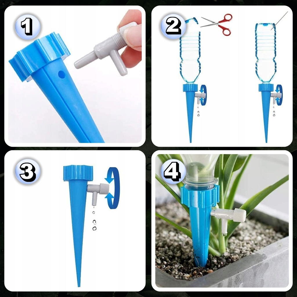 Пристрій для крапельного поливу є надзвичайно універсальним. Завдяки тому, що диспенсер для води підходить для більшості пляшок з напоями, ви можете легко відрегулювати розмір резервуара для води відповідно до розмірів каструлі. Це дозволяє точно регулювати кількість води під потреби кожної рослини, що позитивно позначається на її стані та зростанні.